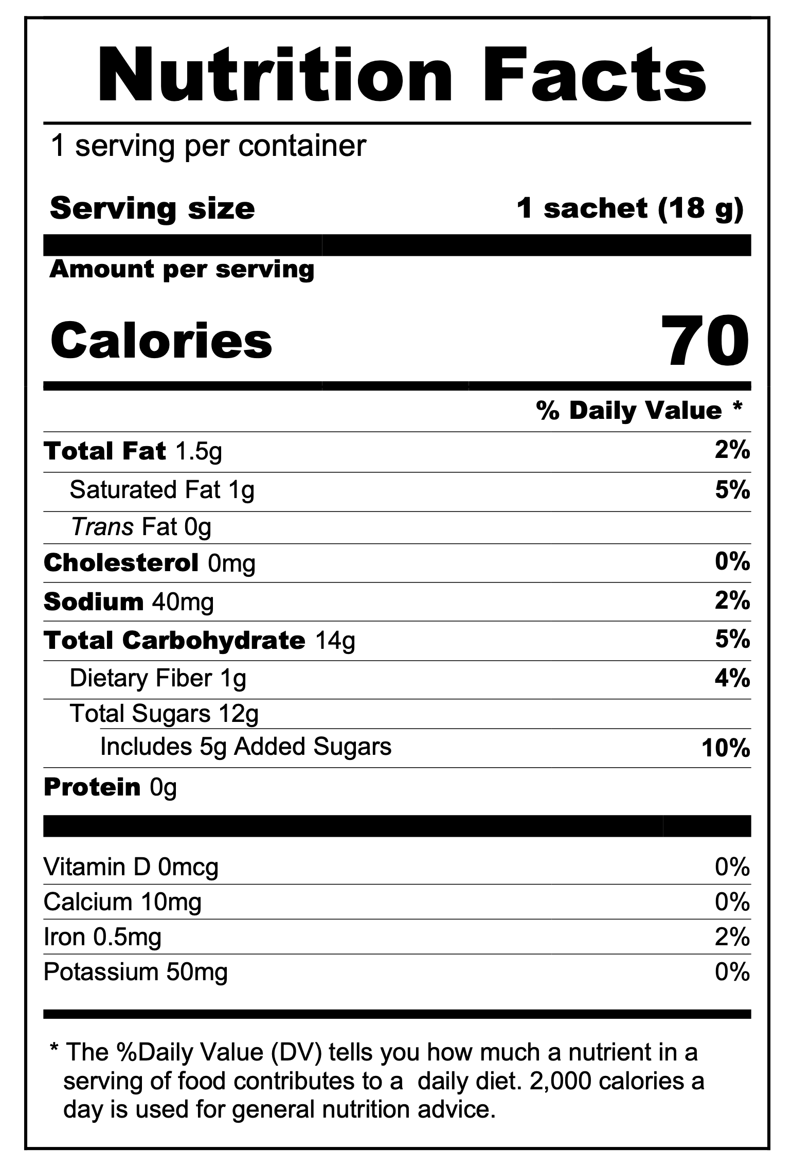 Mango, Sugar, Cocoa Butter, Shortening (Palm), Cocoa Powder,